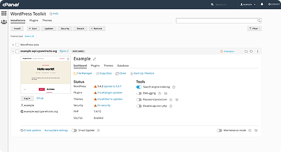WP Toolkit es una interfaz de gestión para WordPress desde cPanel y Plesk que te permite instalar, configurar y administrar sitios web WordPress.